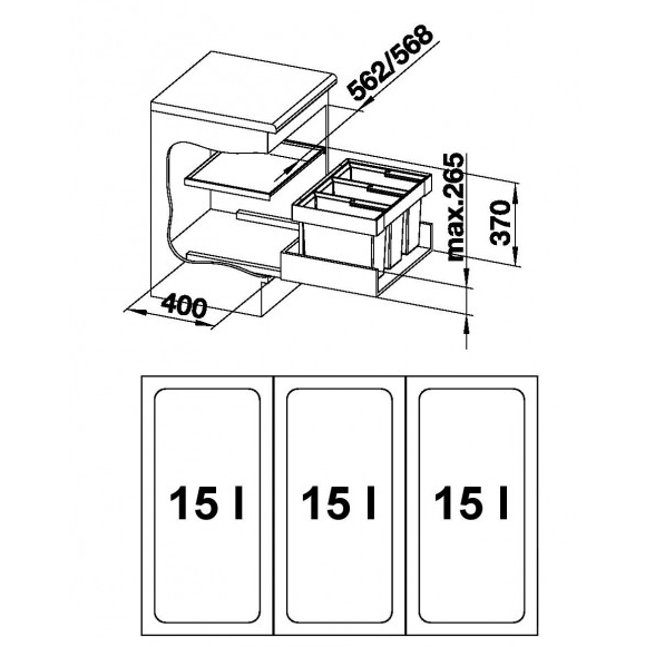 Rozložení nádob: 3 x 15 l