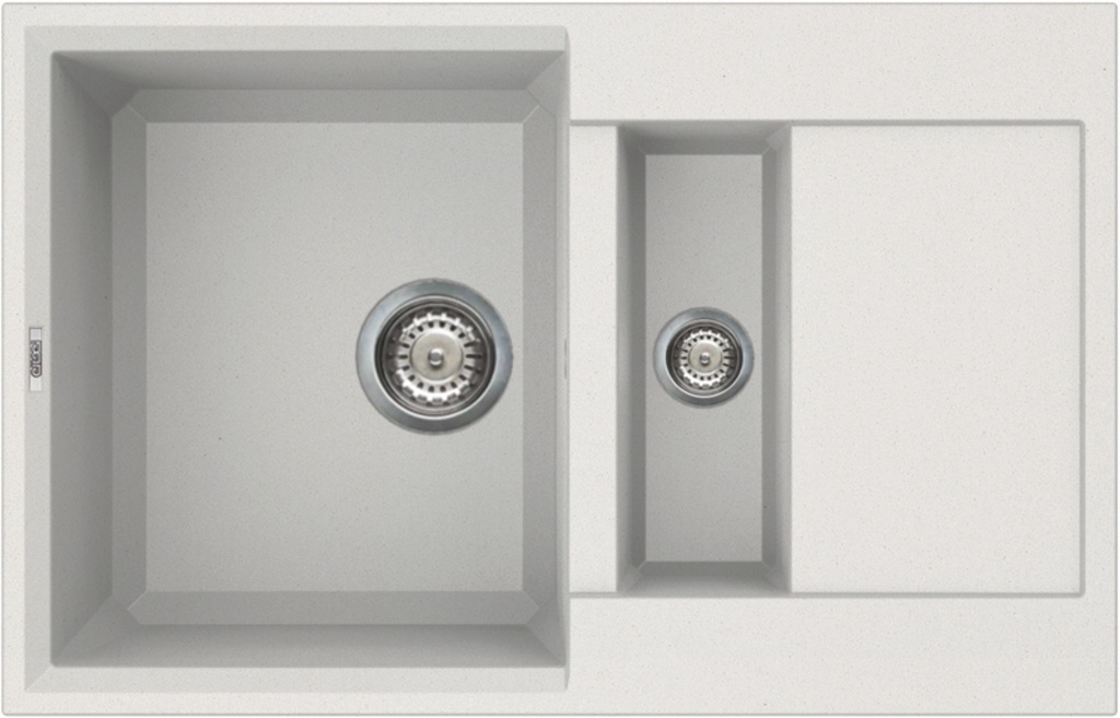 Kuchyňské dřezy se zkosenými hranami. Systém Prisma-clean, který využívá polyedrickou povahu tohoto konkrétního geometrického tvaru, nahrazuje klasický vnitřní zaoblený tvar, za moderní lineární, s prismatickými liniemi, které změkčují vnitřní prostor kuchyňského dřezu a usnadňují jeho čištění při zachování moderního vzhledu a jedinečného estetického výsledku.