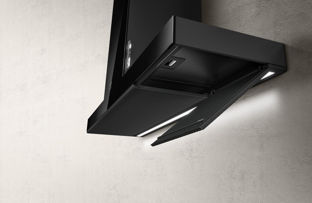 "Estetická linearita se projevuje u hliníkových mřížek s litinovým efektem, které charakterizují všechny tyto odsavače par. Jsou snadno odstranitelné a jsou vybaveny blokovacím systémem, který zabraňuje náhodnému pádu.