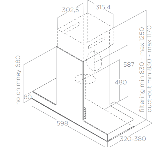 Odsavač par (digestoř) ELICA HAIKU je možné doplnit o montážní přípravek, který umožní plynule nastavit hloubku odsavače od 32 cm do 38 cm.