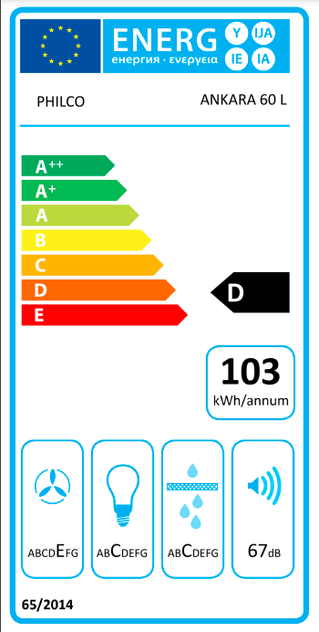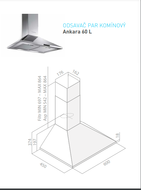 Komínový odsavač par Vlastnosti: Šíře 60 cm Výkon: min./max. 208/559 m3/hod. 3 stupně výkonu Osvětlení LED Účinnost osvětlení C Účinnost filtrace tuků C Hlučnost: 44/67 dB Tří ...Více informací