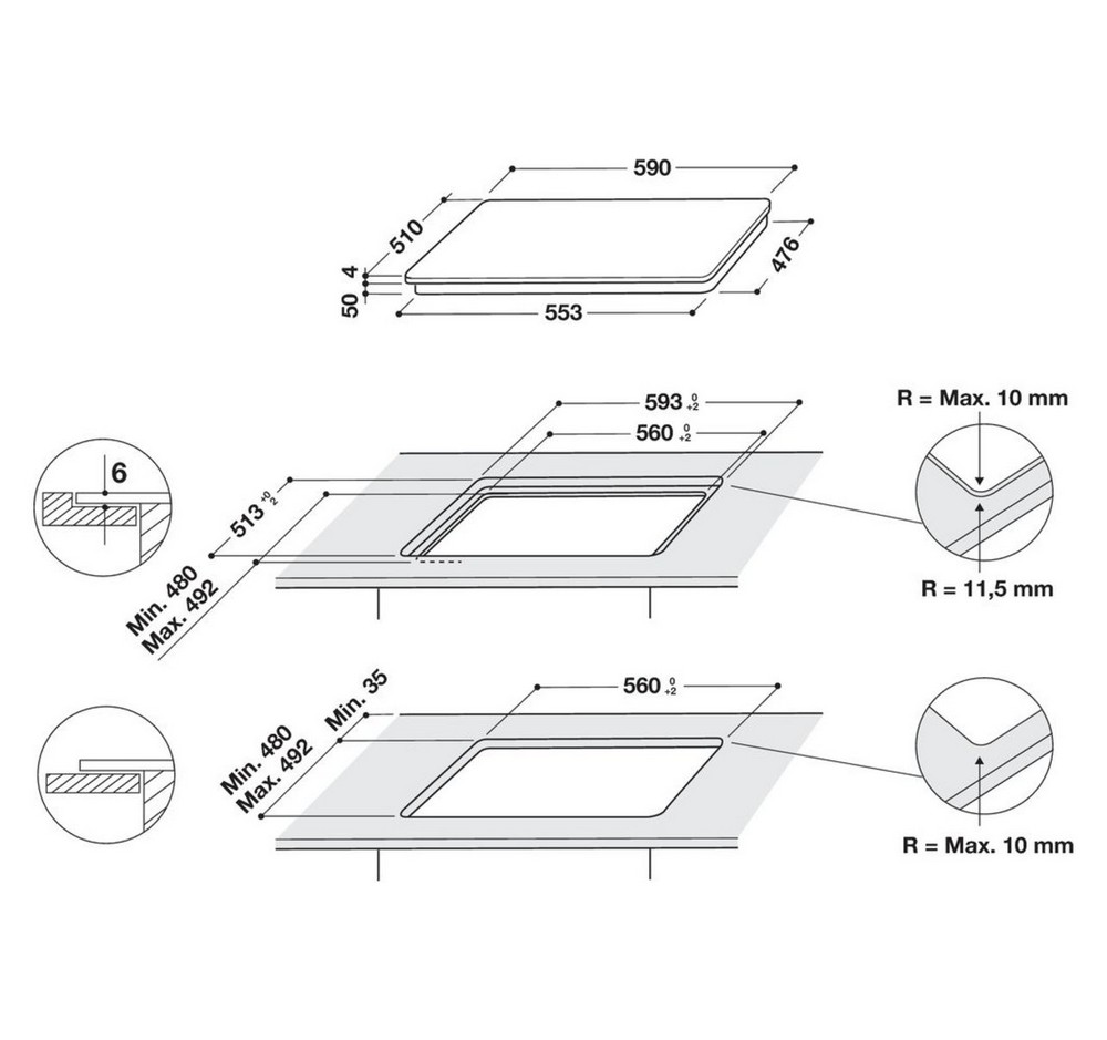 Speciální konstrukce umožňuje instalaci varné desky v dokonalé rovině s kuchyňskou linkou. Díky speciální konstrukci se deska vkládá přímo do výřezu v kuchyňské lince, je s ní tak v dokonalé rovině a přináší nejen estetické i praktické řešení při čištění.