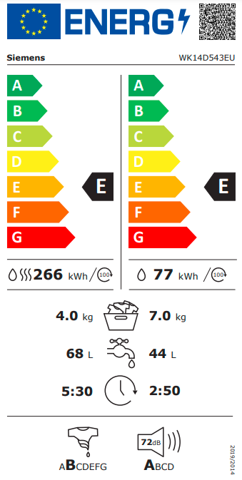 Spotřeba vody celého cyklu praní a sušení v litrech na cyklus4